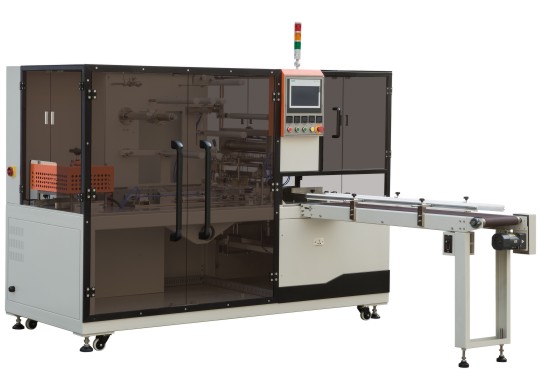 本機采用多功能數(shù)顯變頻無級調(diào)速,PLC編程控制技術(shù),自動給盒,自動計數(shù),觸摸顯示實現(xiàn)人機界面,氣動落膜;機器靠內(nèi)部一系列的凸輪帶動各種連桿及部件來完成工作的,并可與其它生產(chǎn)線連機使用。適用于各行業(yè)中的單件大盒物品包裝或多件小盒物品的集合薄膜包裝(帶金拉線)。